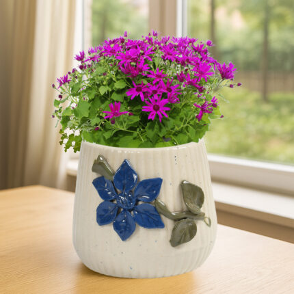 Handmade Ceramic Plant Pot with Embossed Floral Art ₹429.00